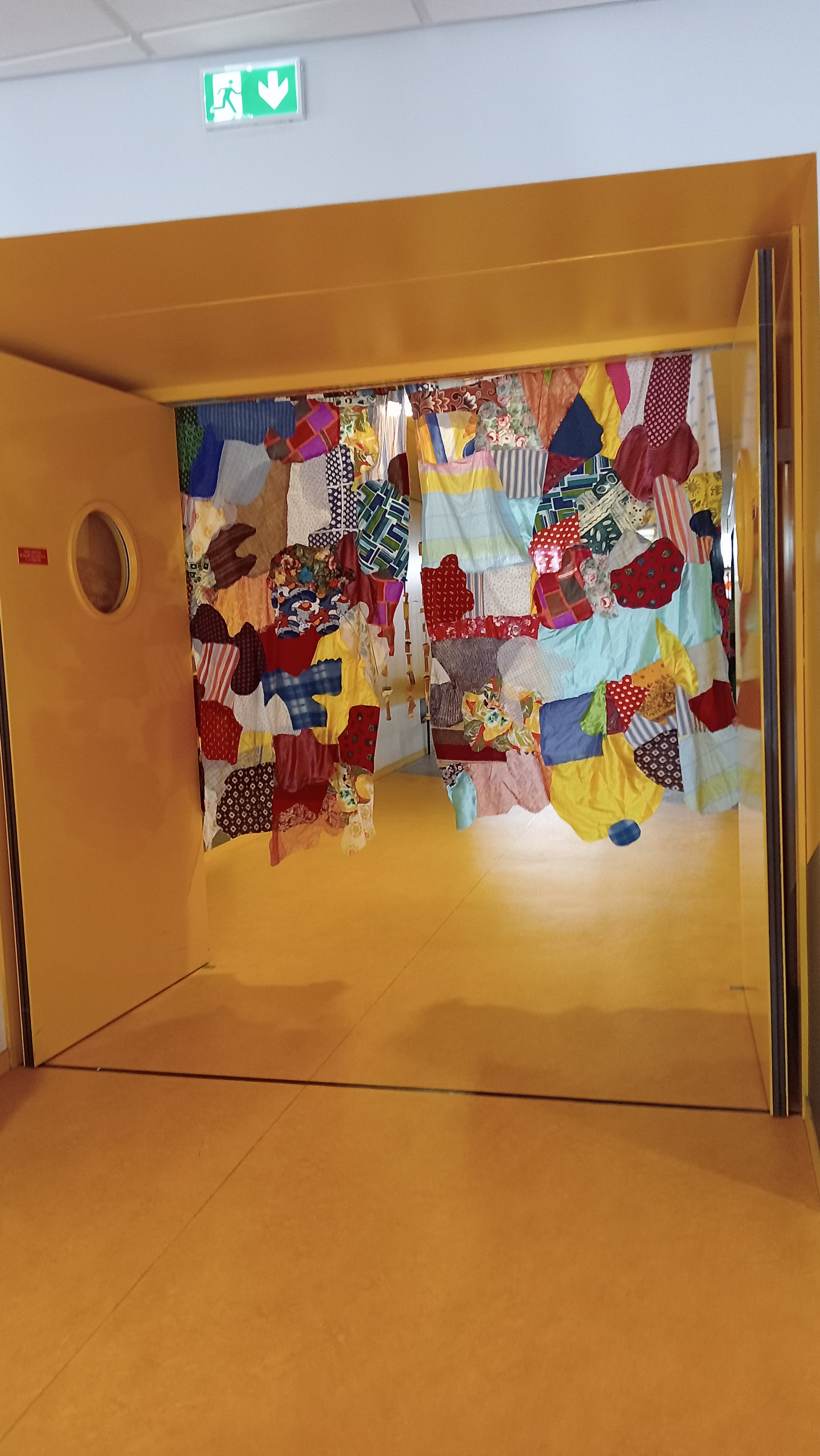Une fois tous les rideaux terminés nous avons, avec les institutrices choisi un espace qui permettrais de circuler entre chaques rideaux et qui permettrais ensuite de performer. chaque rideaux est une expérience sensorielle différentes, le toucher et l'ouïe à l'honneur