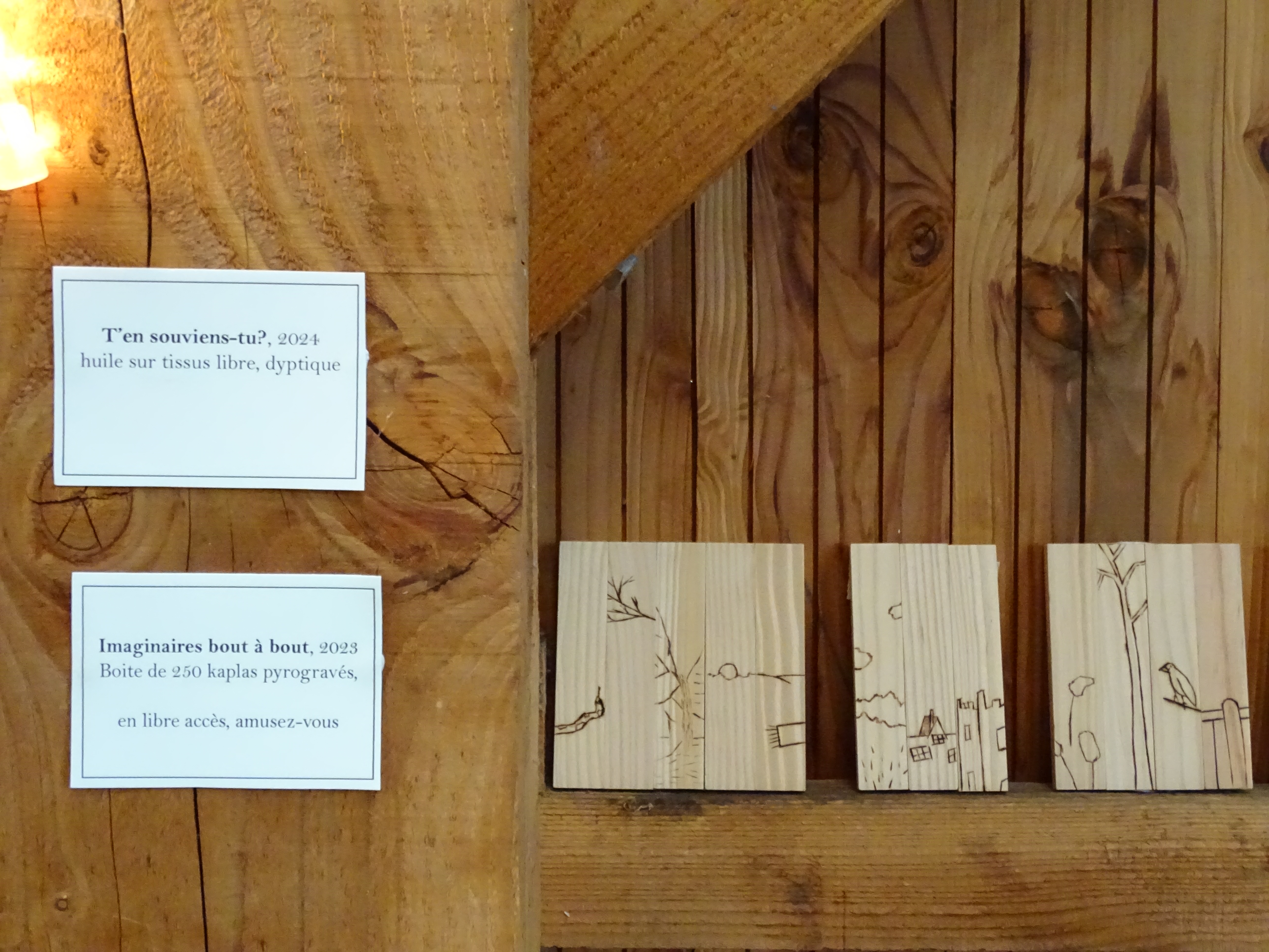 Kapla pyrogravés, boite de 250 en libre accès, 2023 Photo lors de l'xposition Souvenirs d'été