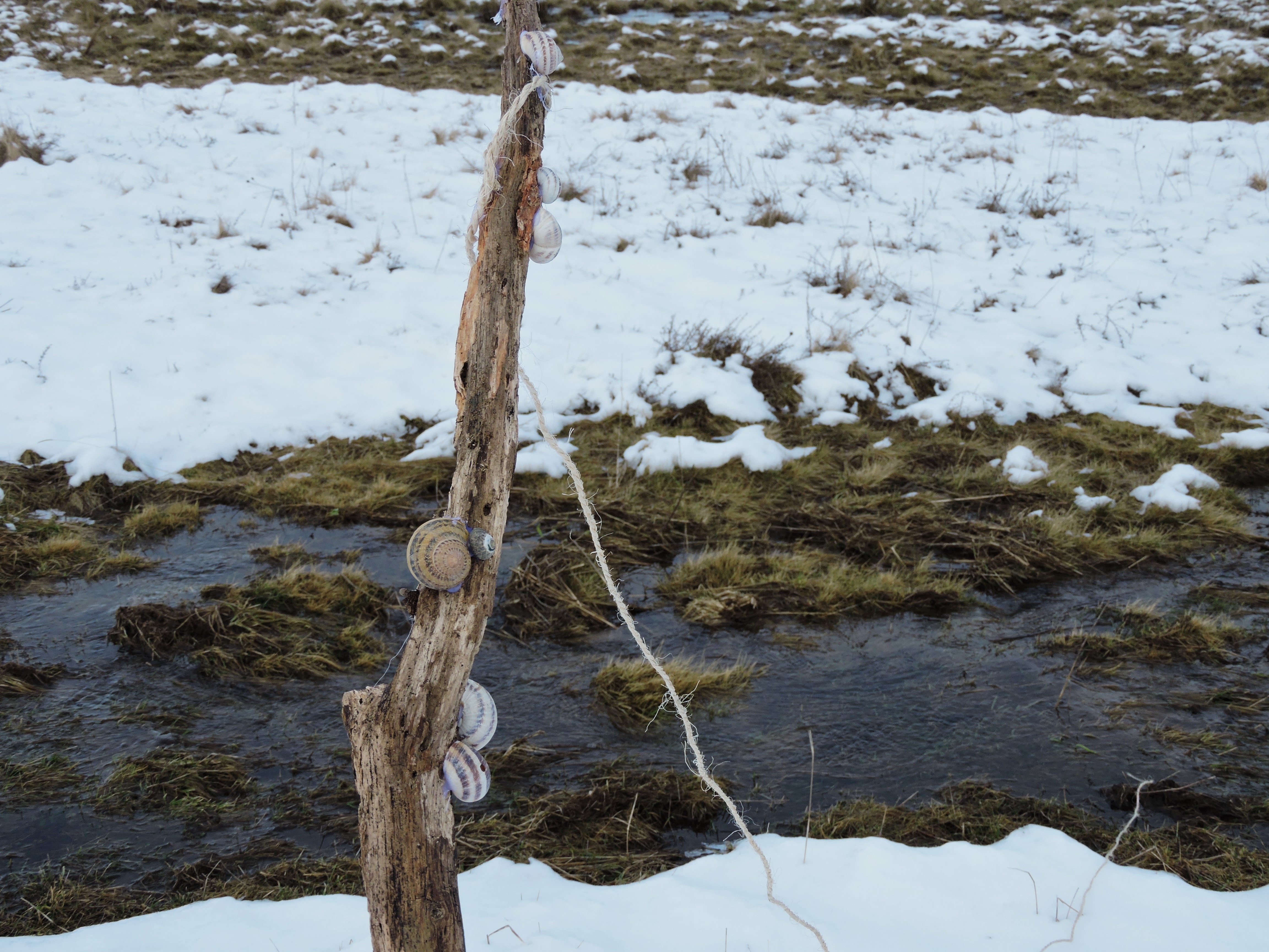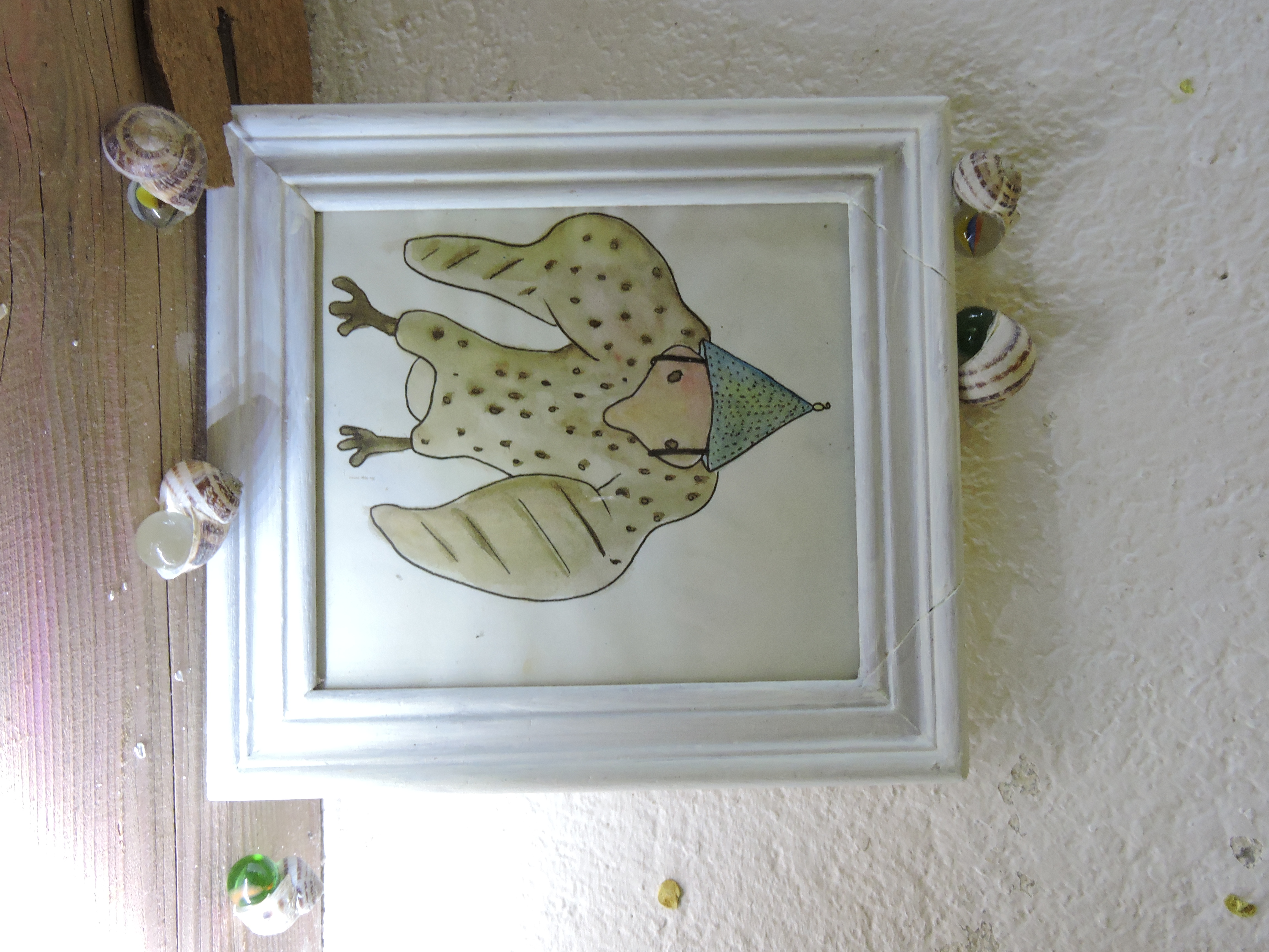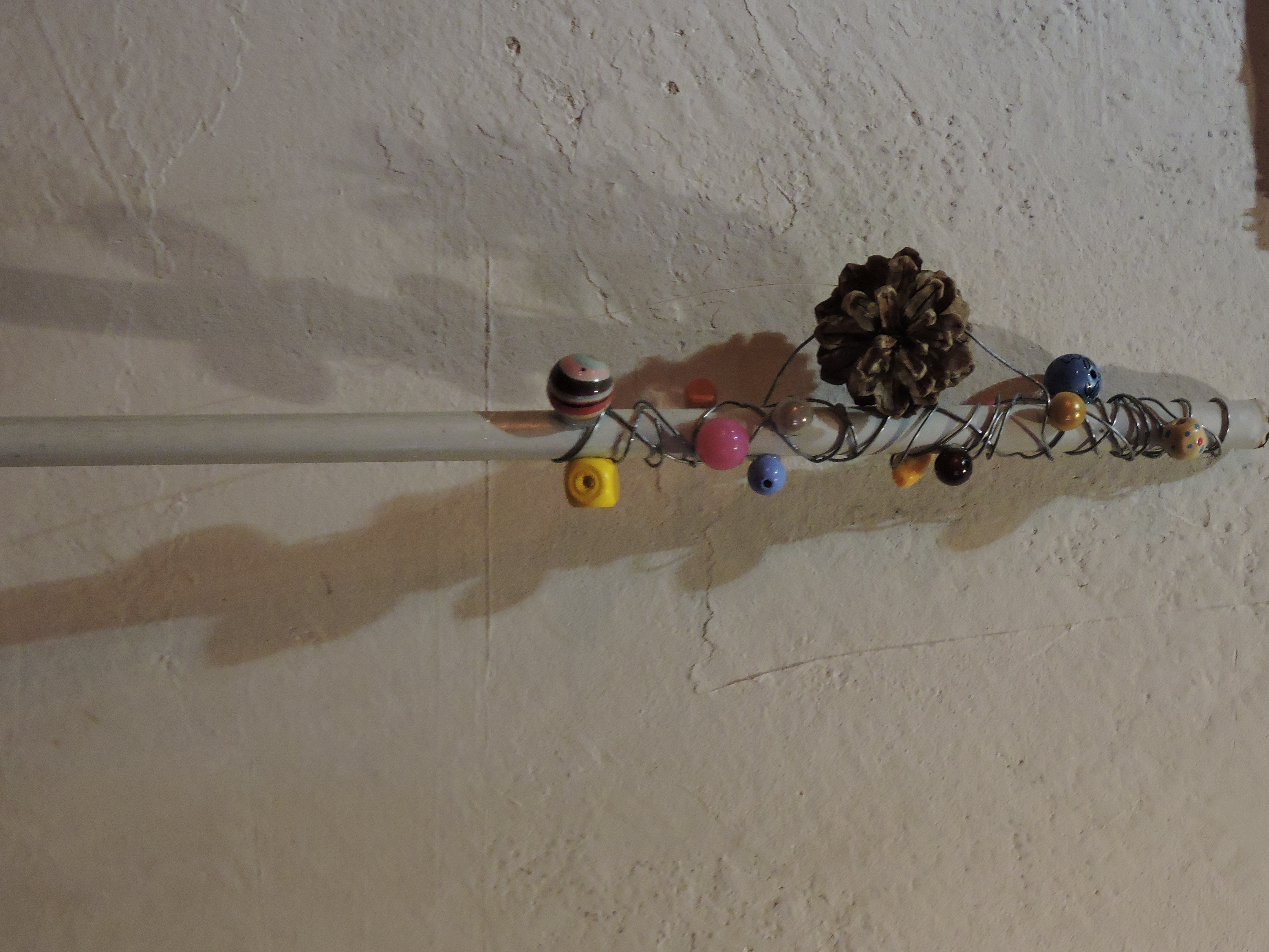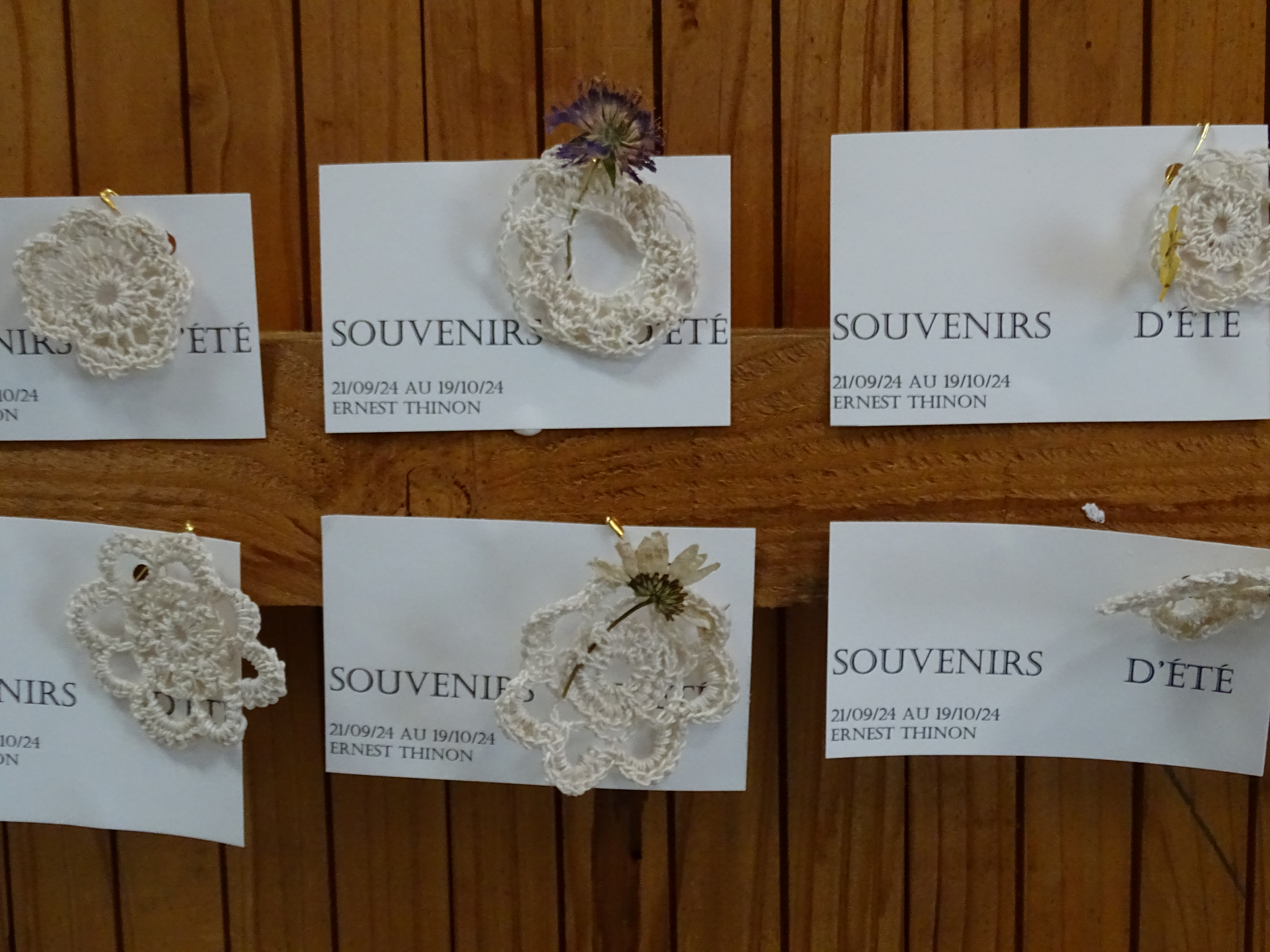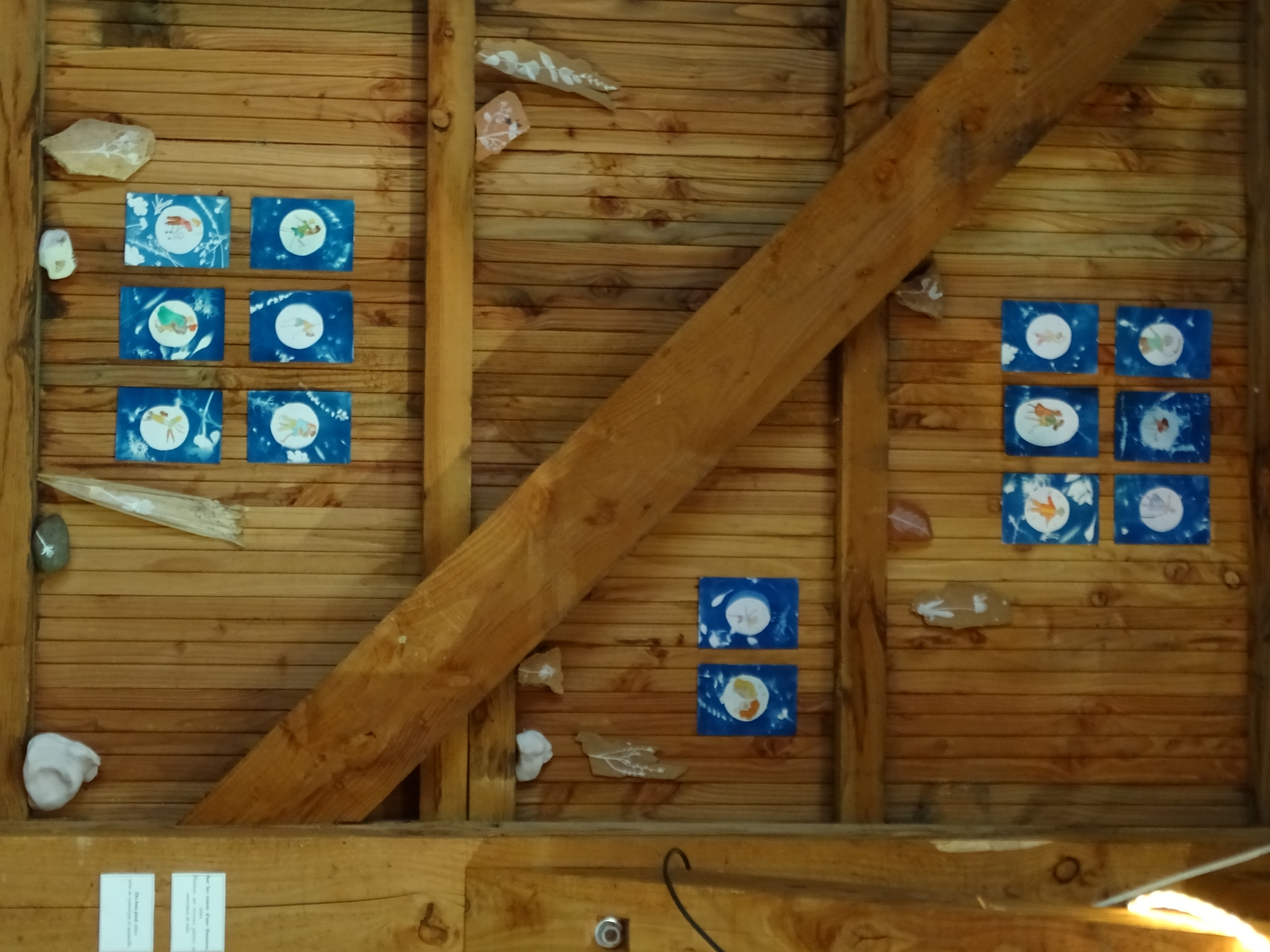 Peinture sur écorces, pierres, végétaux et fragments de tuile, 2024 photo lors de l'exposition Souvenirs d'été