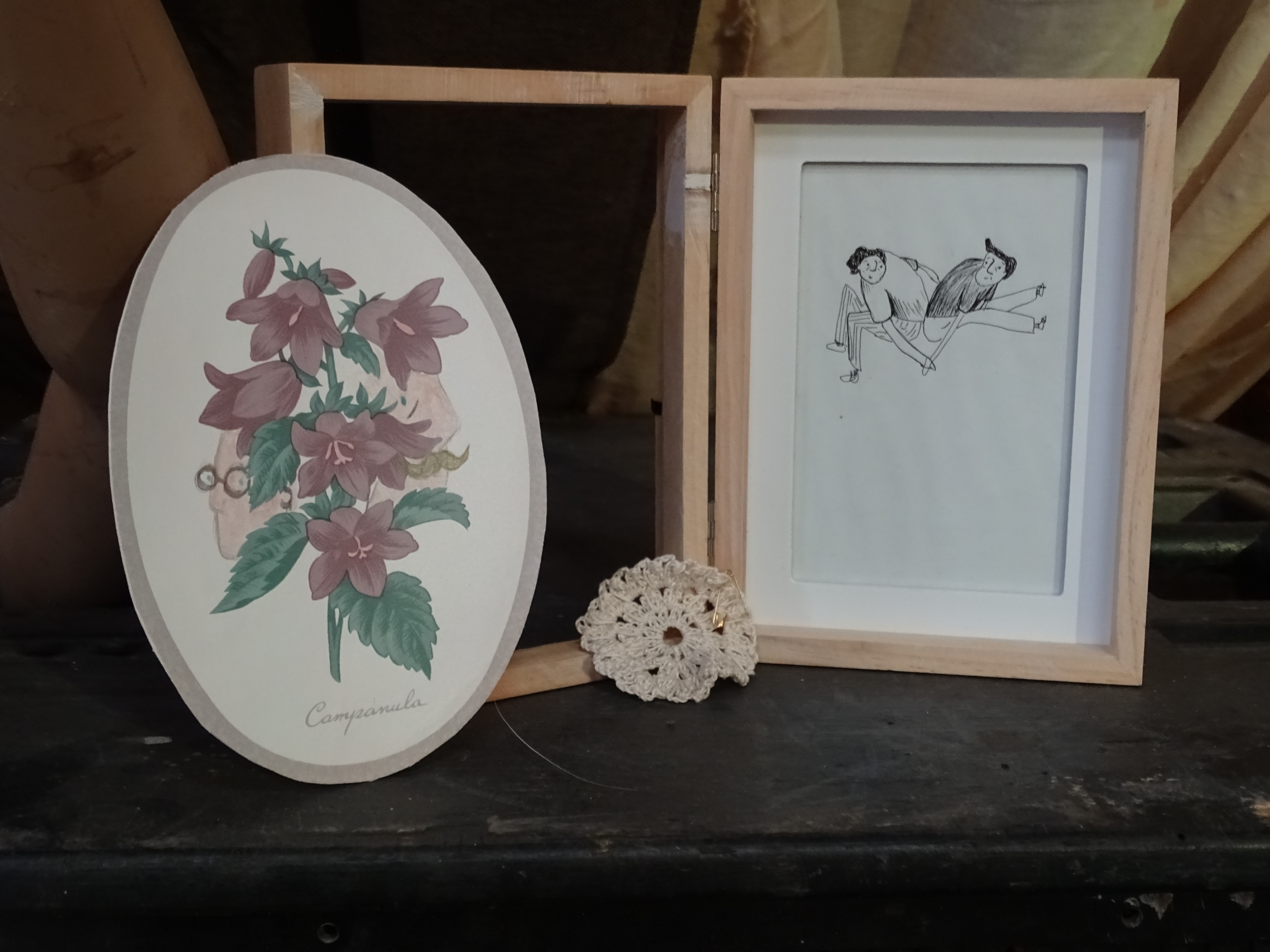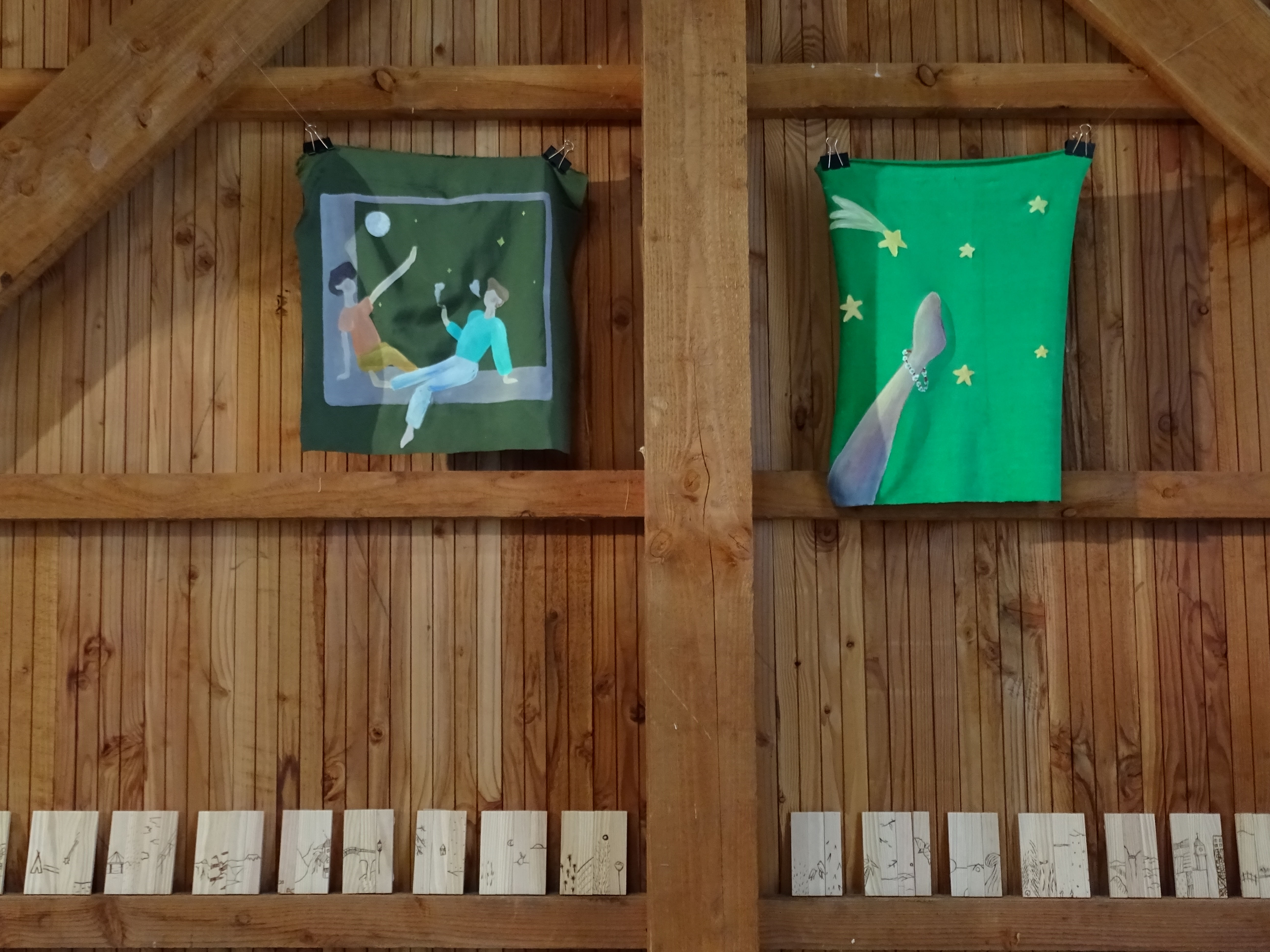 Dyptique huile sur tissus libre 40x40cm et 50x40cm photo lors de l'exposition Souvenir d'été, 2024