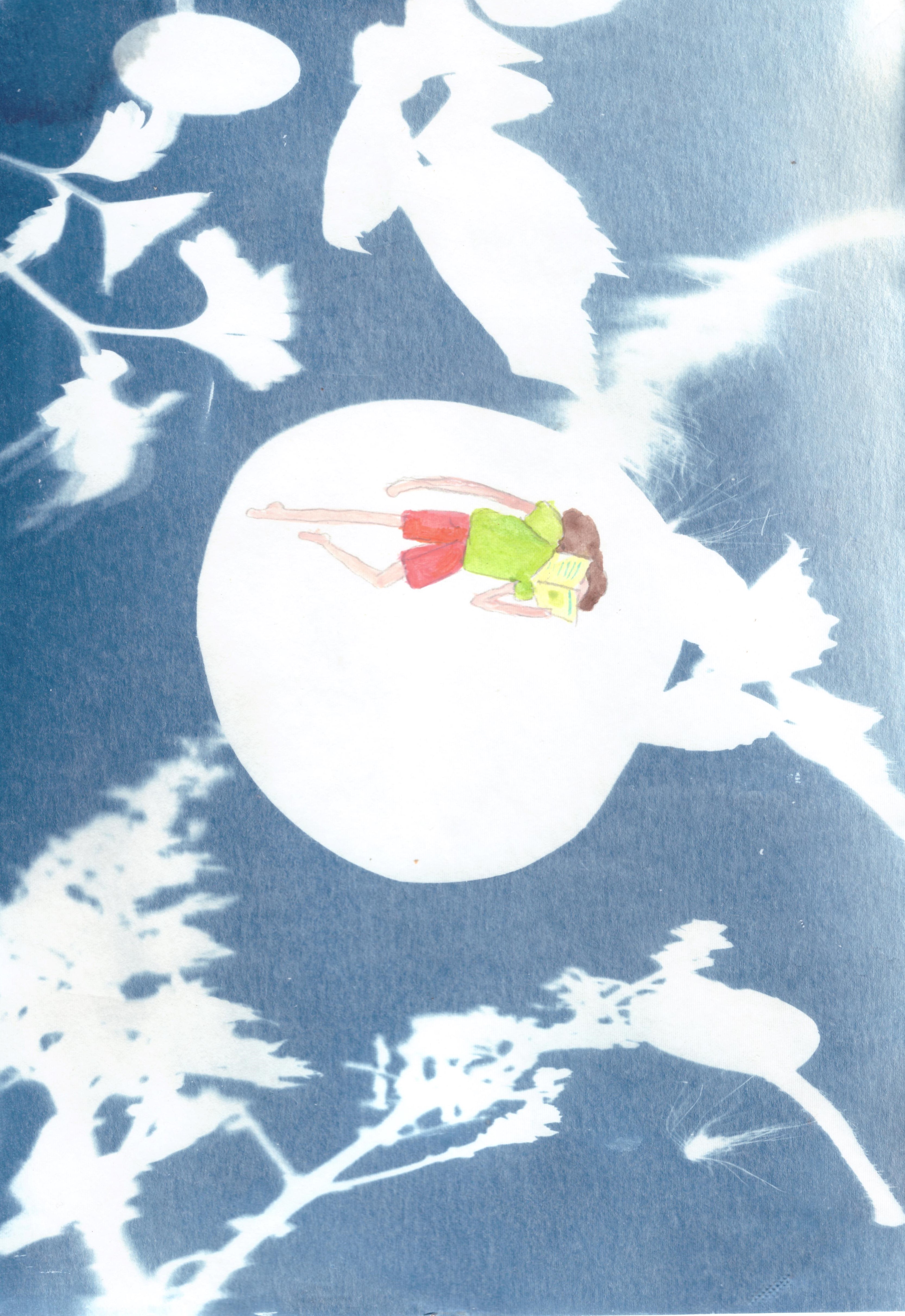 Cyanotype et aquarelle en vente à la librairie du tiers-temps à Aubenas.