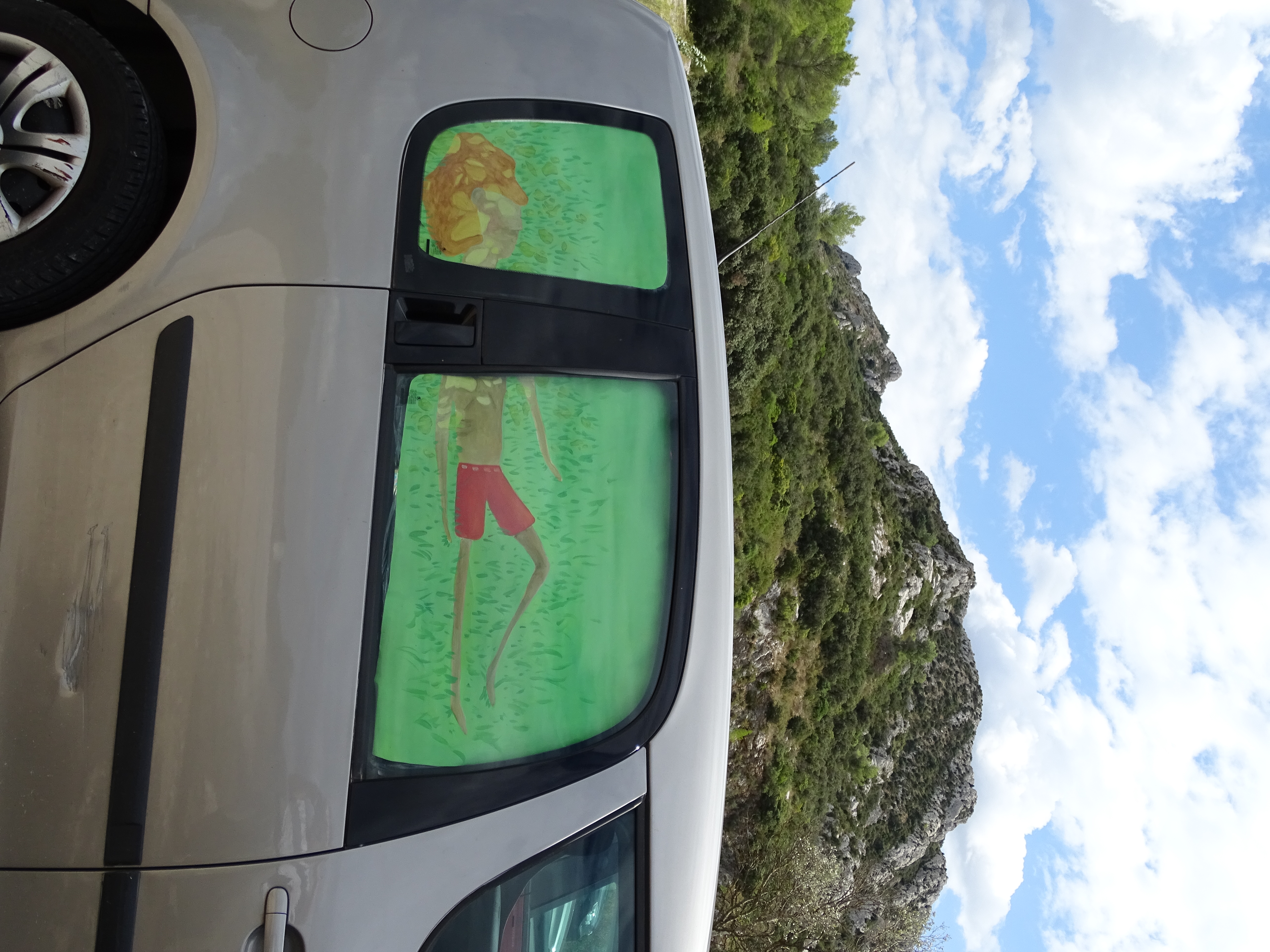 Dyptique de personnages placé sur les sièges arrière .